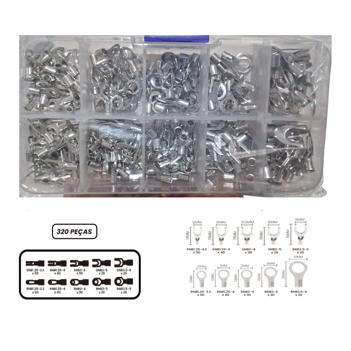 KIT DE TERMINAIS GARFO E OLHAL 320 PEÇAS - BOM 5516