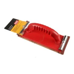 Corpo em plástico e grampos metálicos com porca borboleta para facilitar a fixação da folha de lixa.